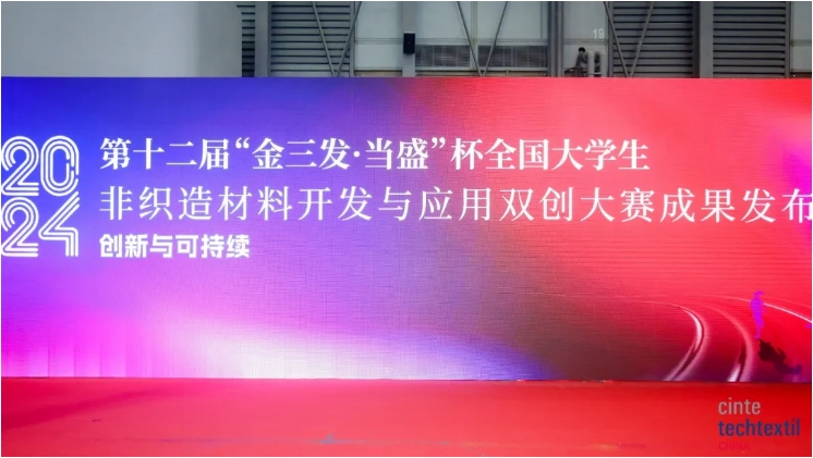 9月20日,第十二屆“金三發(fā)·當(dāng)盛”杯全國(guó)大學(xué)生非織造材料開(kāi)發(fā)與應(yīng)用雙創(chuàng)大賽成果發(fā)布儀式在上海新國(guó)際博覽中心舉行。 中國(guó)紡織工業(yè)聯(lián)合會(huì)副會(huì)長(zhǎng)李陵申,中國(guó)紡織工業(yè)聯(lián)合會(huì)副會(huì)長(zhǎng)、中國(guó)國(guó)際貿(mào)促會(huì)紡織行業(yè)分會(huì)常務(wù)副會(huì)長(zhǎng)梁鵬程,中國(guó)紡織服裝教育學(xué)會(huì)會(huì)長(zhǎng)倪陽(yáng)生,中國(guó)產(chǎn)業(yè)用紡織品行業(yè)協(xié)會(huì)會(huì)長(zhǎng)李桂梅,教育部高等學(xué)...